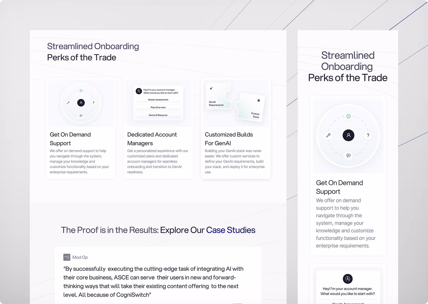 CogniSwitch needed a digital presence that could clearly express their AI offering, build trust, and scale with future features.