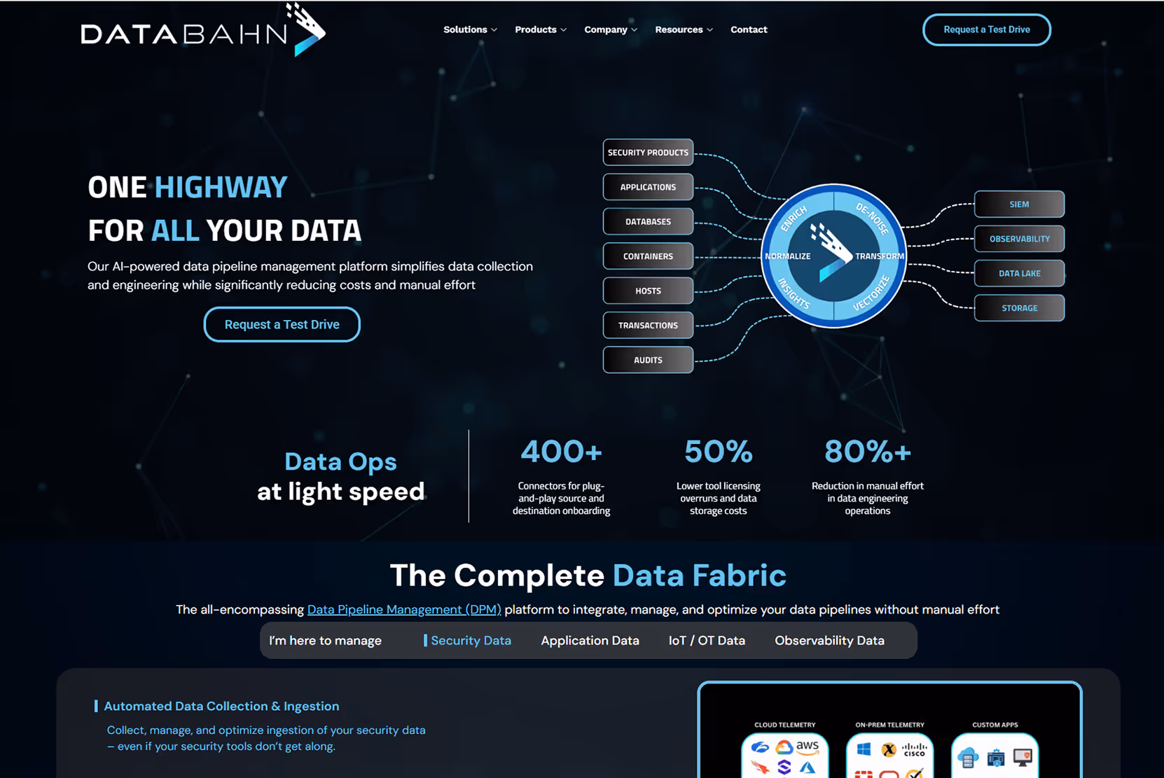 DataBahn helps enterprises manage and optimize complex telemetry data. With its AI-powered data fabric, the platform reduces noise, cuts costs, and delivers actionable insights across security, observability, and application workflows.