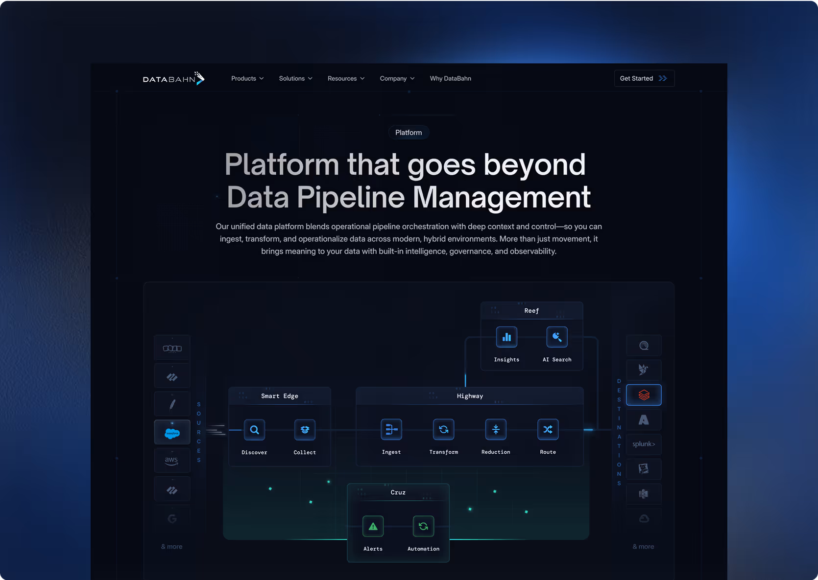 We redesigned DataBahn’s website to reflect their AI-powered data platform, translating complex security and data pipeline solutions into an intuitive, user-friendly experience.