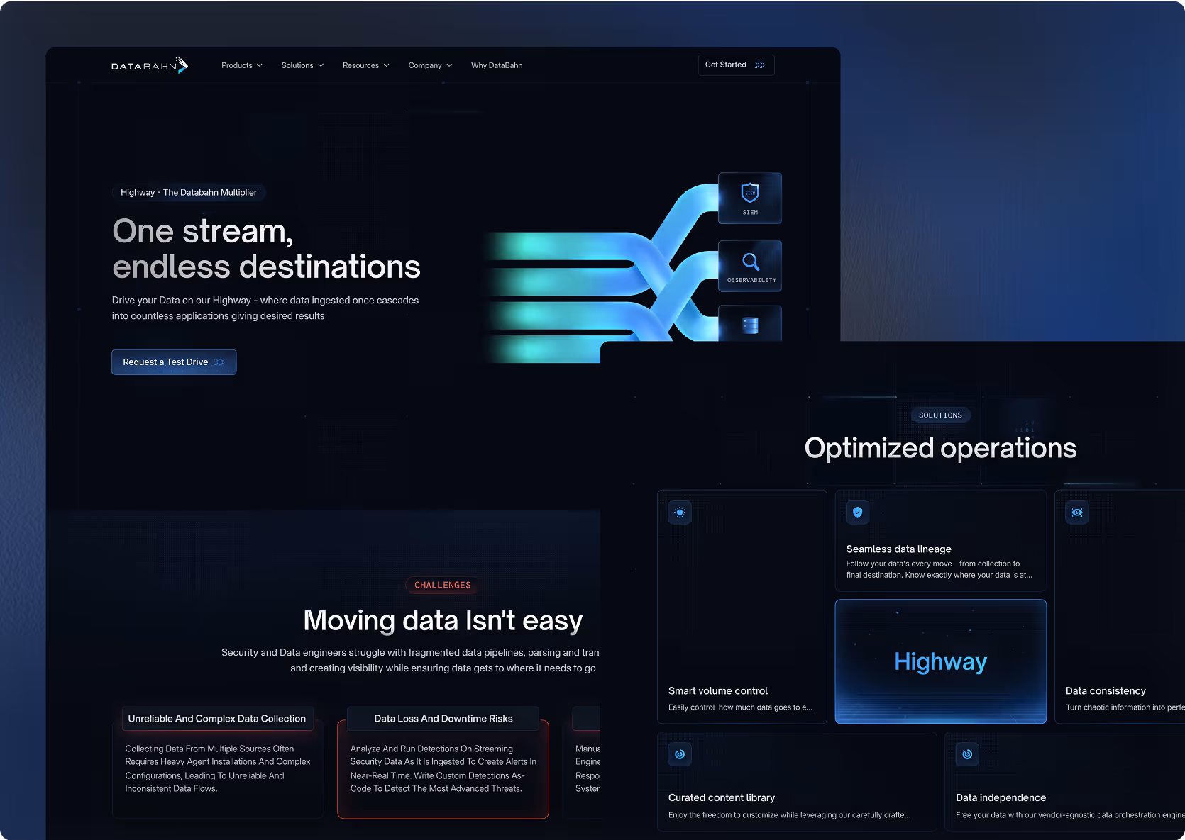To match its ambitious vision, DataBahn needed a digital presence that turned complexity into clarity through compelling graphics, strengthened enterprise trust, and created space for growth ahead.