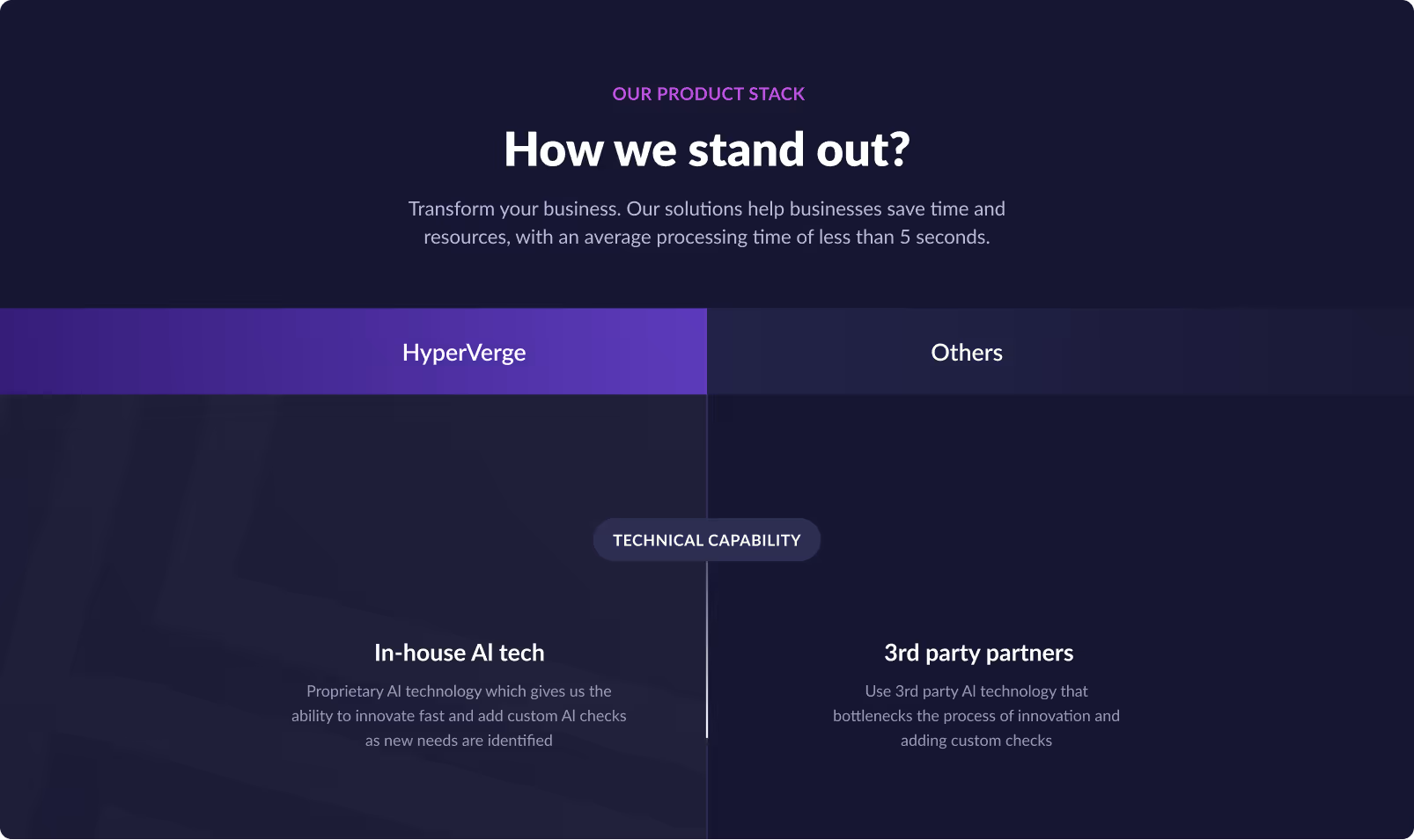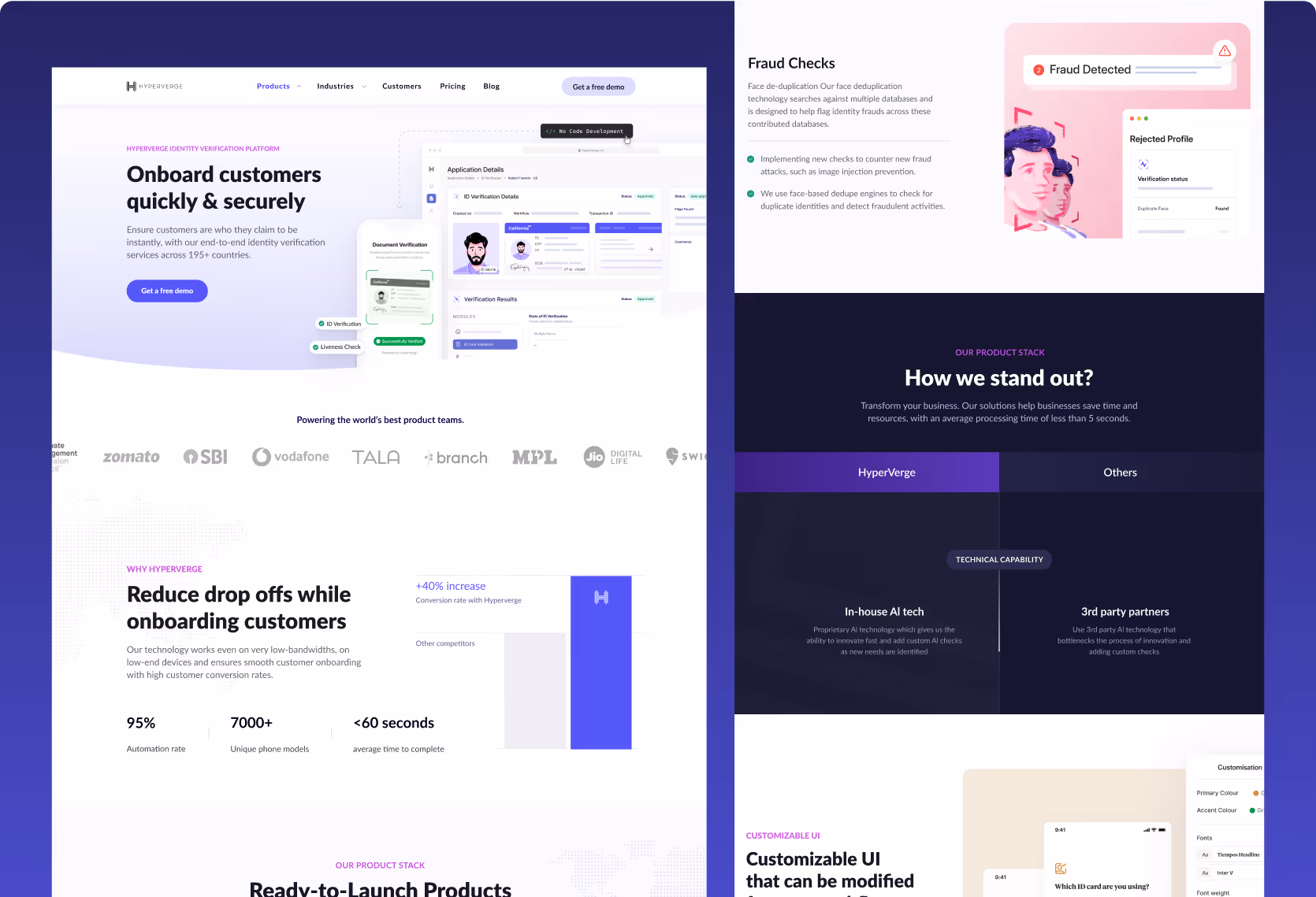Since HyperVerge’s brand and UI design were already defined, our main objectives centered on transforming that into a robust, flexible, and maintainable web implementation.