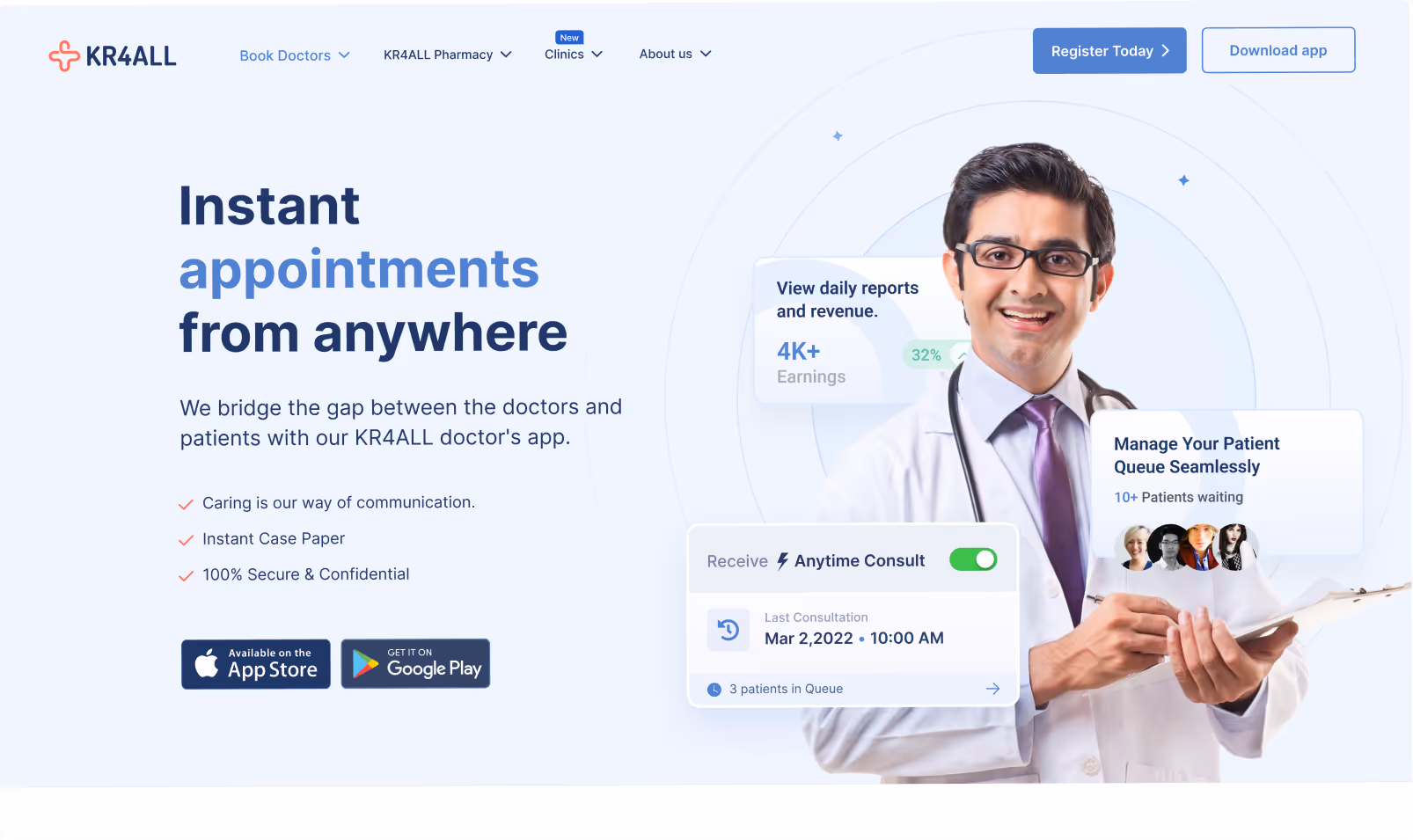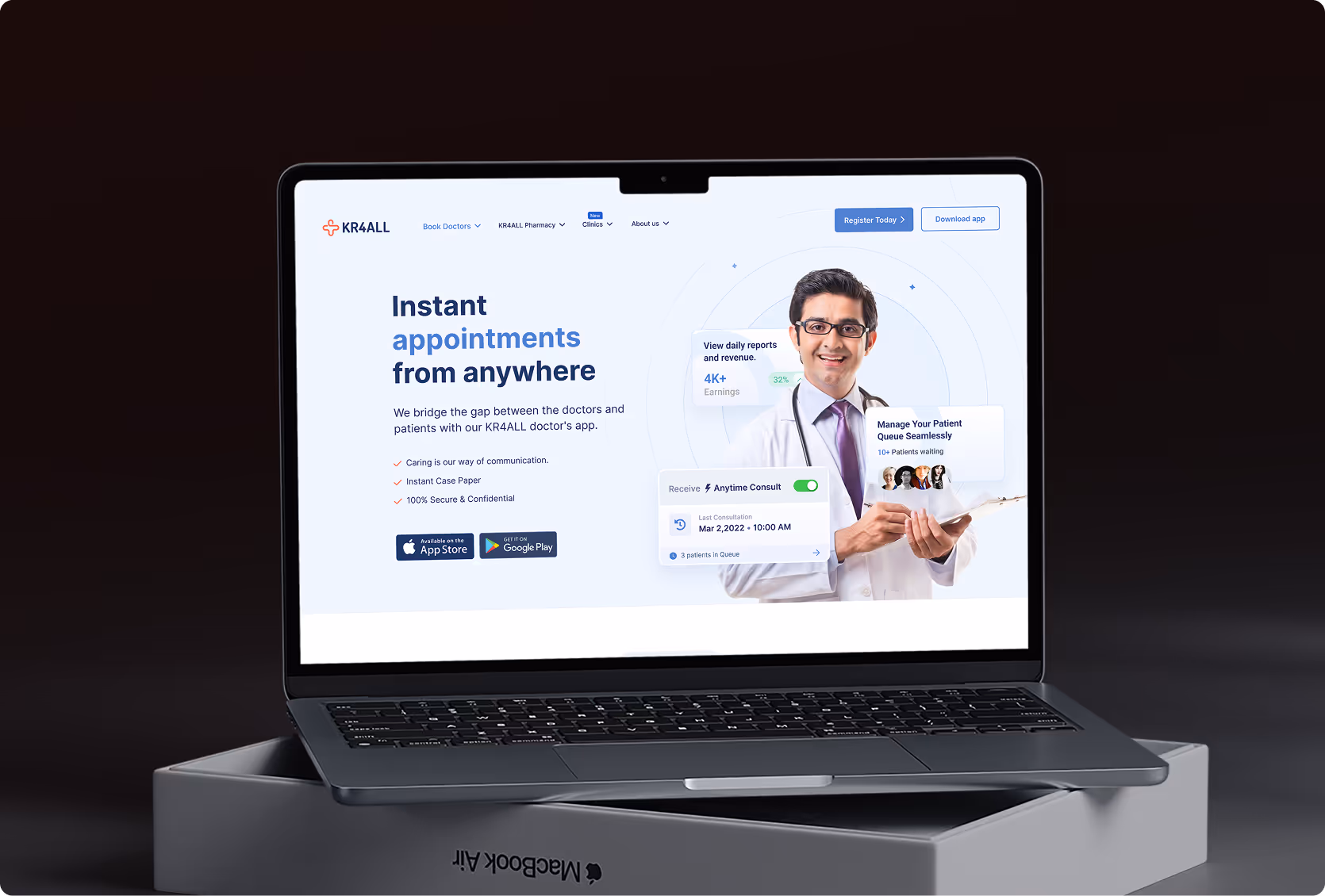 Flowtrix designed and developed KR4ALL’s website for their 24x7 appointment booking and wellness platform, creating a faster, cleaner, and more human digital experience that connects patients, doctors, and partners effortlessly.