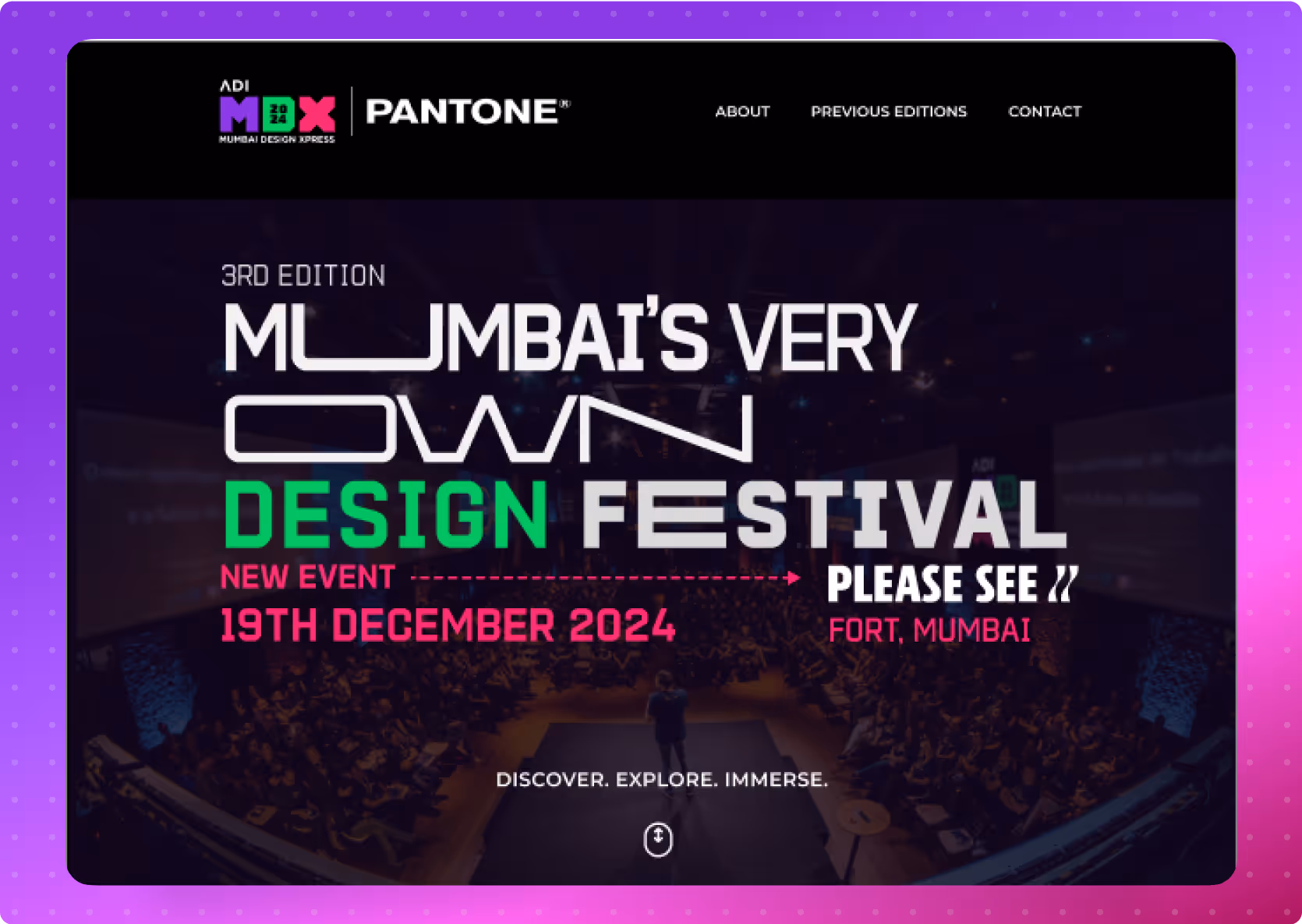 We crafted a bold, expressive website for Mumbai Design Xpress 2025, capturing the festival’s creative spirit and transforming its theme “Beyond the Facade” into an engaging digital experience.