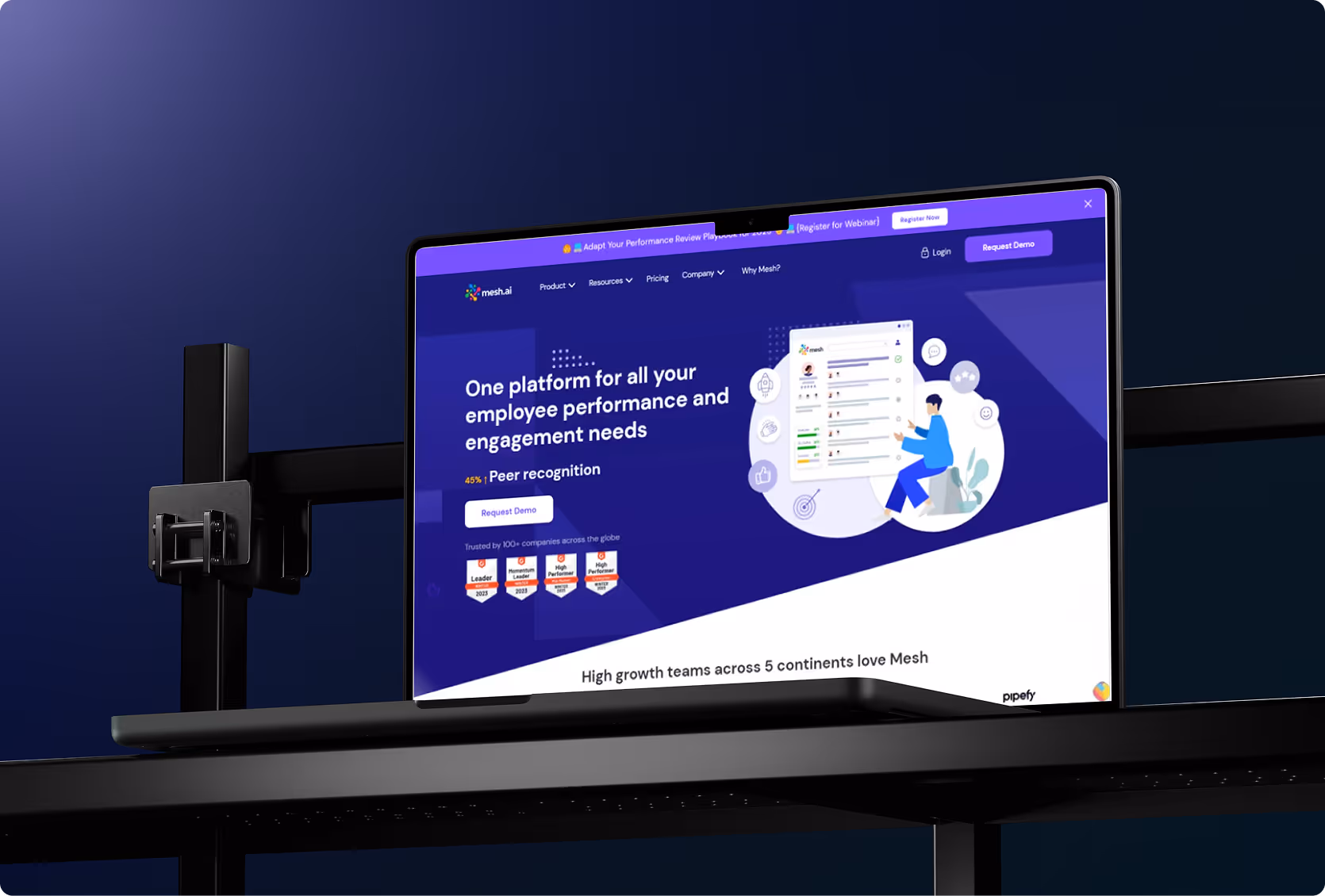 Mesh.ai’s platform combines performance tracking, feedback, and AI-driven coaching into one intelligent system. Our goal was to position Mesh.ai as the category leader in AI-native performance management through a seamless, modern Webflow build.