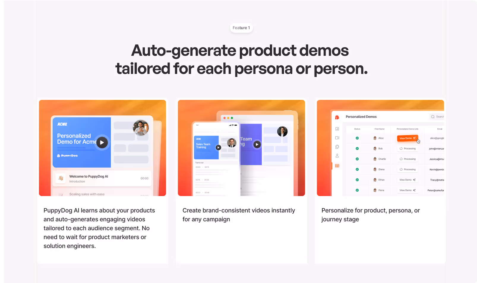PuppyDog.io is an AI platform that allow teams to generate personalized product demo videos in minutes, thus making product storytelling faster, clearer, and more engaging. Their platforms helps you in increasing your customer engagement and bring in more revenue.