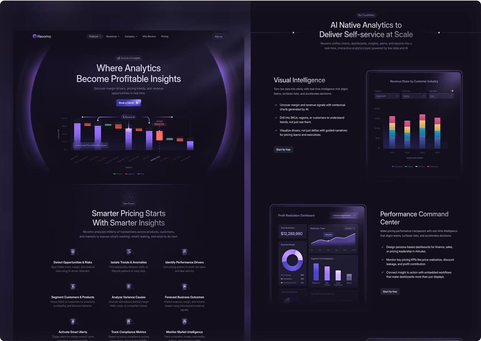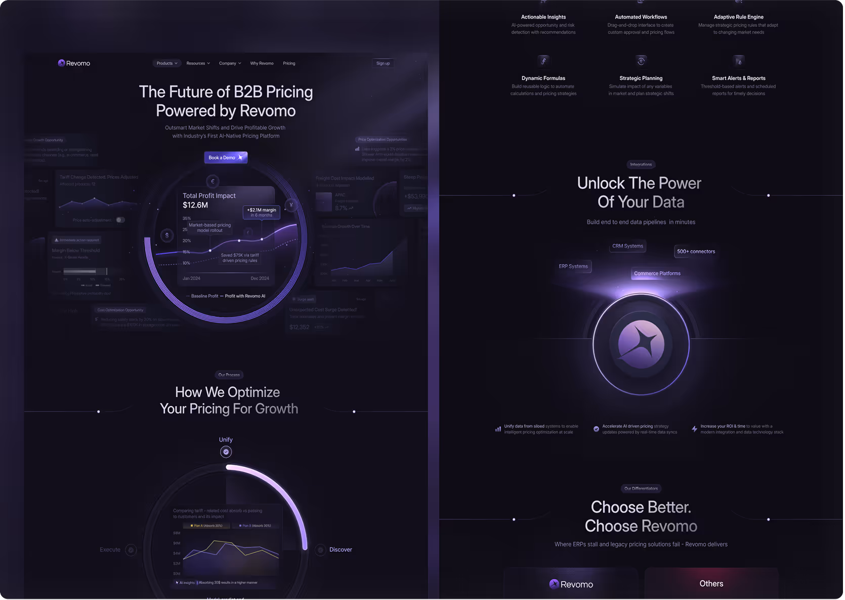Flowtrix partnered with Revomo to design a clear, intuitive, and scalable digital website that showcases the platform’s full capabilities, from unified data hub and analytics & insights to simulation, optimization, and price management. The website highlights how Revomo empowers teams to make data-driven decisions, automate workflows, and maximize profitability with AI-driven results.