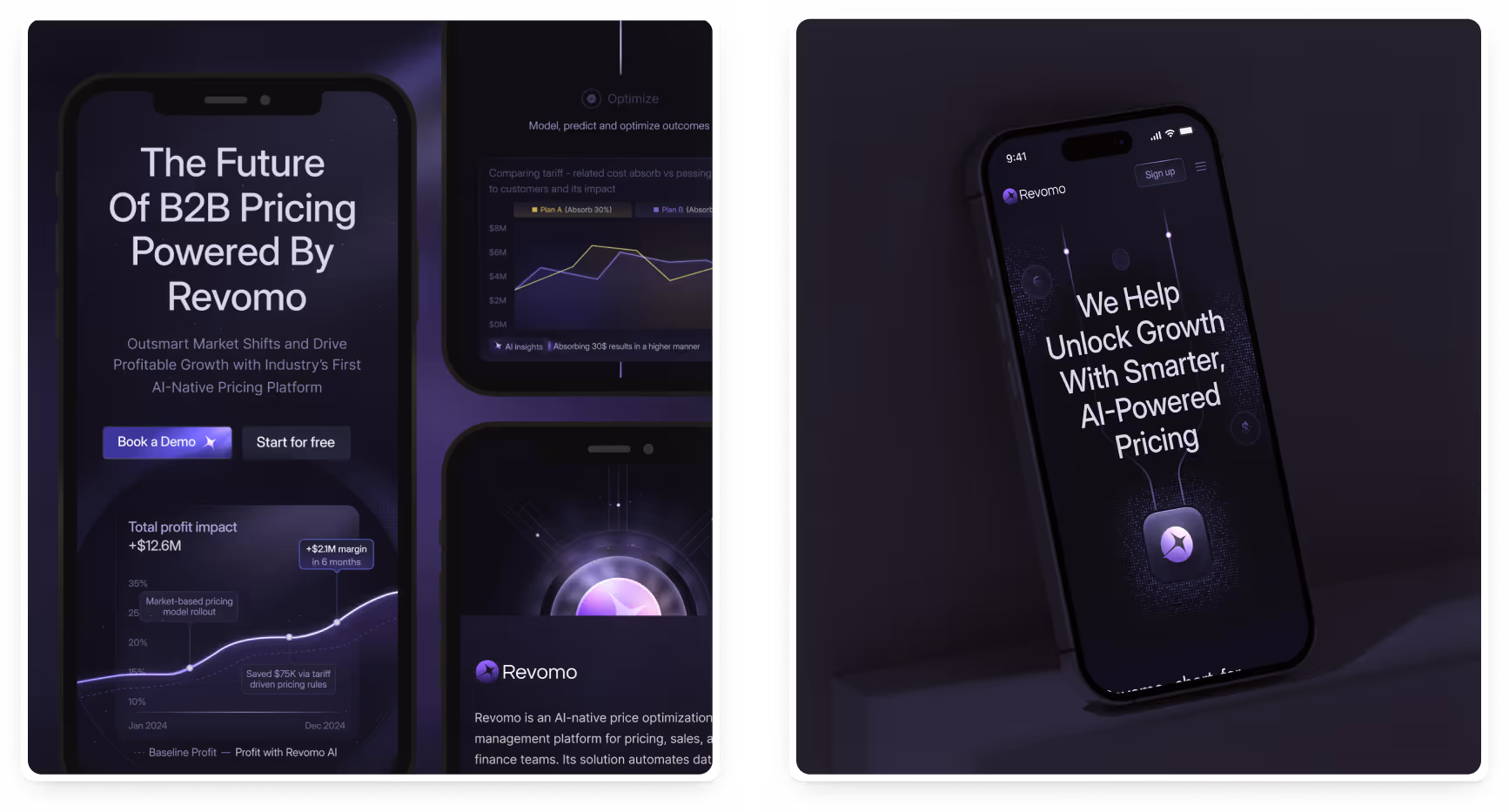 - Develop a bold dark-mode visual identity to match Revomo’s futuristic positioning.