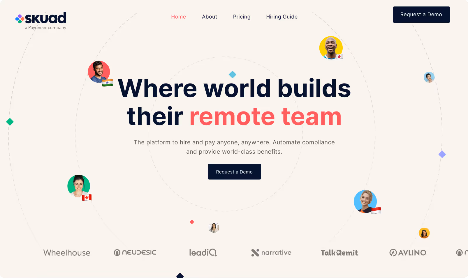 Flowtrix built a modern, scalable website for Skuad (now Payoneer WFM) to present their global employment platform, simplifying hiring, payroll, and compliance across 160+ countries.